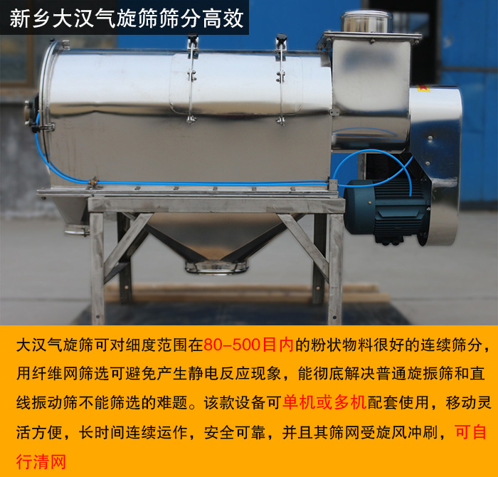 哪里購(gòu)買優(yōu)質(zhì)氣旋篩?歡迎前來(lái)新鄉(xiāng)大漢進(jìn)行選購(gòu),大漢氣旋篩型號(hào)齊全、性價(jià)比高,可按需定制,如需了解氣旋篩價(jià)格,型號(hào)等詳細(xì)信息,請(qǐng)隨時(shí)進(jìn)行免費(fèi)咨詢或來(lái)廠免費(fèi)試機(jī)。