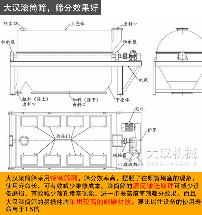 選購(gòu)滾筒篩設(shè)備,優(yōu)選新鄉(xiāng)大漢。另外,滾筒篩型號(hào)種類(lèi)齊全,各種型號(hào)的滾筒篩現(xiàn)貨直供,還可根據(jù)用戶(hù)需求進(jìn)行定制化生產(chǎn),質(zhì)優(yōu)價(jià)廉,歡迎前來(lái)選購(gòu)。