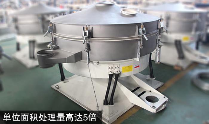 圓形搖擺篩與旋振篩、直線篩等傳統(tǒng)篩分設(shè)備相比,單位面積處理量高達(dá)5倍,特別適合精細(xì)、超精細(xì)粉末等難處理的物料。