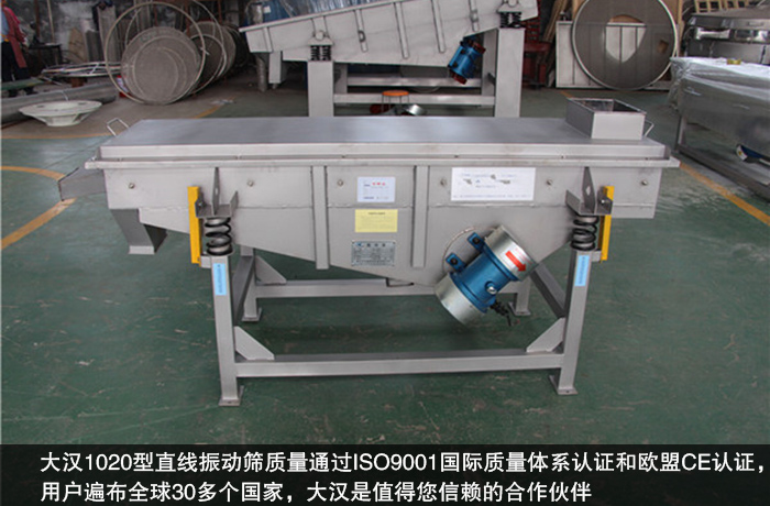 大漢在豐富的生產(chǎn)經(jīng)驗(yàn)上和成熟的技術(shù)工藝上,始終堅(jiān)持把握產(chǎn)品的合理定位,對(duì)于設(shè)備生產(chǎn)、加工、裝配等環(huán)節(jié)進(jìn)行層層監(jiān)控,以確保優(yōu)質(zhì)的產(chǎn)品質(zhì)量,大漢1020型直線振動(dòng)篩質(zhì)量通過(guò)ISO9001國(guó)際質(zhì)量體系認(rèn)證和歐盟CE認(rèn)證,用戶(hù)遍布全球30多個(gè)國(guó)家,大漢是值得您信賴(lài)的合作伙伴。