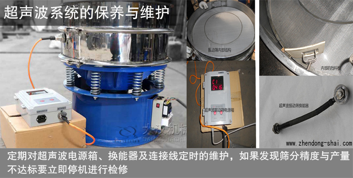 超聲波系統(tǒng)是超聲波振動時核心的部件,要定期對超聲波電源箱、換能器及連接線定時的維護,如果發(fā)現(xiàn)篩分精度與產(chǎn)量不達標要立即停機進行檢修。