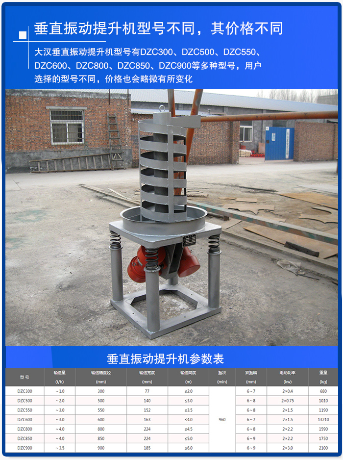 1、垂直振動提升機型號不同,其價格不同