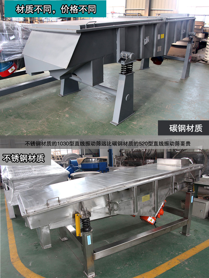大漢1030型直線振動(dòng)篩材質(zhì)分為不銹鋼材質(zhì)和碳鋼材質(zhì)。碳鋼沒有特意添加合金元素的鋼材,不銹鋼是為了防銹而添加高合金含量的鋼材,所以不銹鋼材質(zhì)的1030型直線振動(dòng)篩遠(yuǎn)比碳鋼材質(zhì)的520型直線振動(dòng)篩要貴。