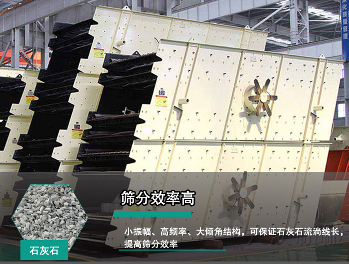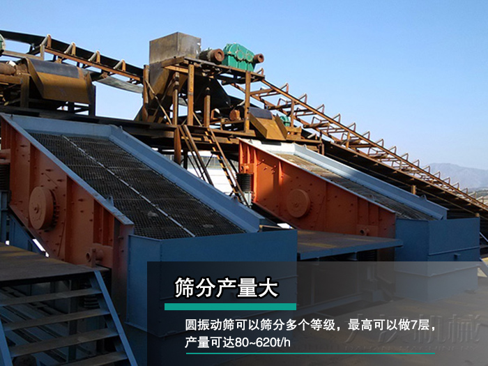 圓振動(dòng)篩可以篩分多個(gè)等級(jí),高可以做7層,還可與多種設(shè)備配合使用,更適合于石灰石生產(chǎn)線上的要求,產(chǎn)量可達(dá)80~620t/h。