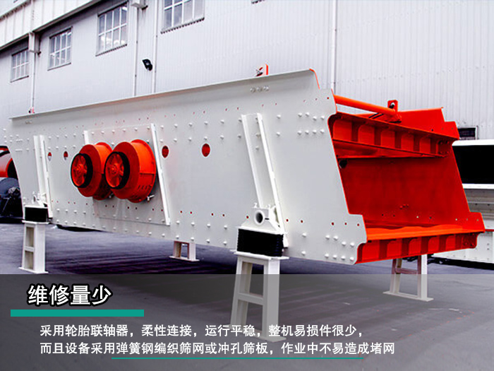 圓振動(dòng)篩采用輪胎聯(lián)軸器,柔性連接,運(yùn)行平穩(wěn),整機(jī)易損件很少,故障率低,而且設(shè)備采用彈簧鋼編織篩網(wǎng)或沖孔篩板,作業(yè)中不易造成堵網(wǎng),維修量少。