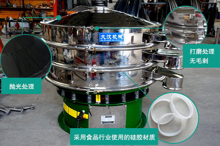 核桃粉作為作為一種可食用的物料,其衛(wèi)生情況也是許多用戶比較重視的,新鄉(xiāng)大漢不銹鋼振動篩整機(jī)采用了304不銹鋼材質(zhì),再經(jīng)由嚴(yán)格的拋光處理,機(jī)器焊接之處也經(jīng)過打磨,密封件采用食品行業(yè)使用的硅膠材質(zhì),非常符合食品衛(wèi)生標(biāo)準(zhǔn)。