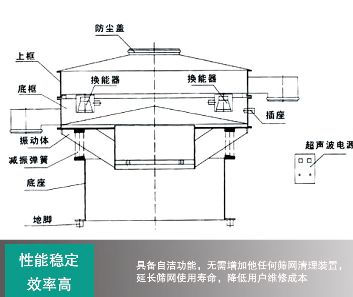相信用戶購買一臺設(shè)備都是來服務(wù)生產(chǎn)的,所以一臺性能優(yōu)越的超聲波旋振篩直接決定了其生產(chǎn)效率的高低,大漢超聲波旋振篩在旋振篩基礎(chǔ)上引入一個高頻率、低振幅的超聲振動波,具備自潔功能,無需增加其他篩網(wǎng)清理裝置,延長篩網(wǎng)使用壽命,降低用戶維修成本。