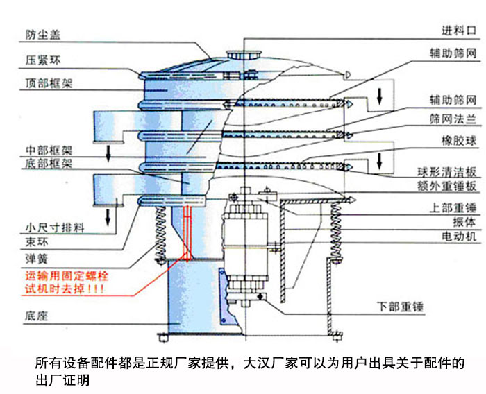 新鄉(xiāng)大漢在振動(dòng)篩設(shè)備配件的選擇上杜絕以次充好,所有設(shè)備配件都是正規(guī)廠(chǎng)家提供,大漢廠(chǎng)家可以為用戶(hù)出具關(guān)于配件的出廠(chǎng)證明。