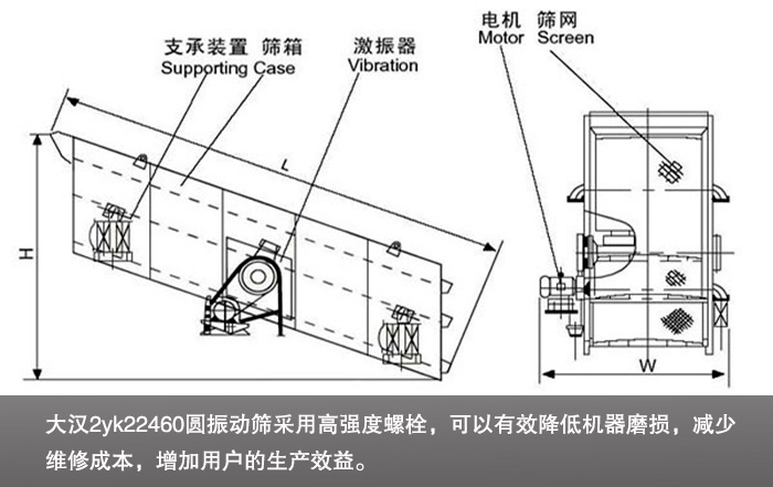 大漢2yk2460圓振動(dòng)篩可與多種篩分輔助配置,更好地理解客戶個(gè)性化的篩分需求,滿足不同行業(yè)的需求,達(dá)到佳篩分目的。