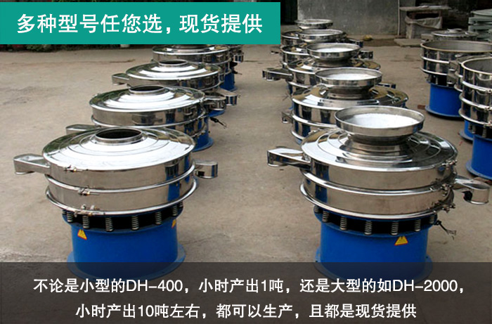 大漢廠家生產(chǎn)的金屬粉末振動(dòng)篩型號(hào)非常齊全,不論是小型的DH-400,小時(shí)產(chǎn)出1噸,還是大型的如DH-2000,小時(shí)產(chǎn)出10噸左右。都可以生產(chǎn),且都是現(xiàn)貨提供。