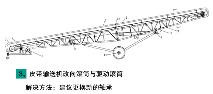 正常情況下,改向滾筒與驅(qū)動(dòng)滾筒在工作時(shí)的噪音是很小的,如果皮帶輸送機(jī)出現(xiàn)異常噪音是一般是由于軸承損壞造成的。