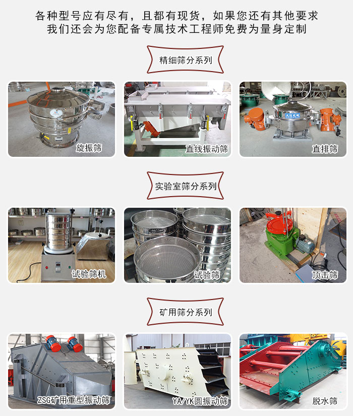 大漢廠家生產(chǎn)的振動篩主要針對精細(xì)篩分,實(shí)驗(yàn)室篩分,礦用篩分等多種不同的場景,該設(shè)備種類型號多樣,有幾百種型號可供您選擇,且都有現(xiàn)貨,如果您還有其他要求,我們還會為您配備專屬技術(shù)工程師免費(fèi)為量身定制。
