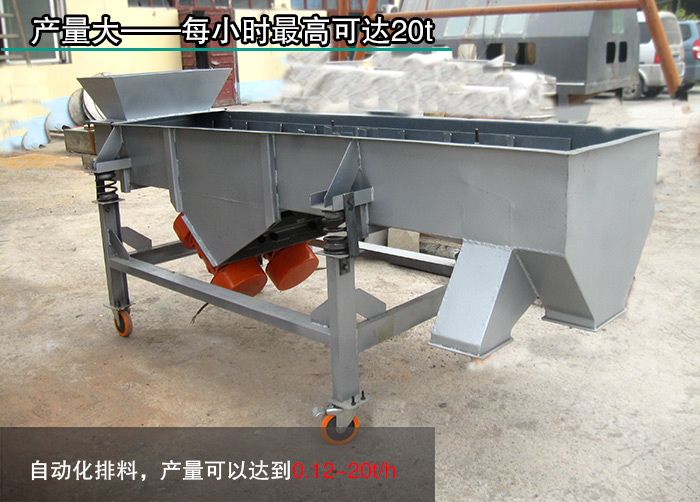 直線振動篩篩面層數(shù)高可達5層,用戶可以根據(jù)篩分產量的大小選擇合適層數(shù)的直線振動篩。另外,直線振動篩可以自動化排料,產量可以達到0.12~20t/h。