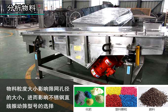 物料顆粒的大小也影響不銹鋼直線振動篩的選型,因為其篩網(wǎng)孔徑的大小直接影響不銹鋼直線振動篩型號的選擇。