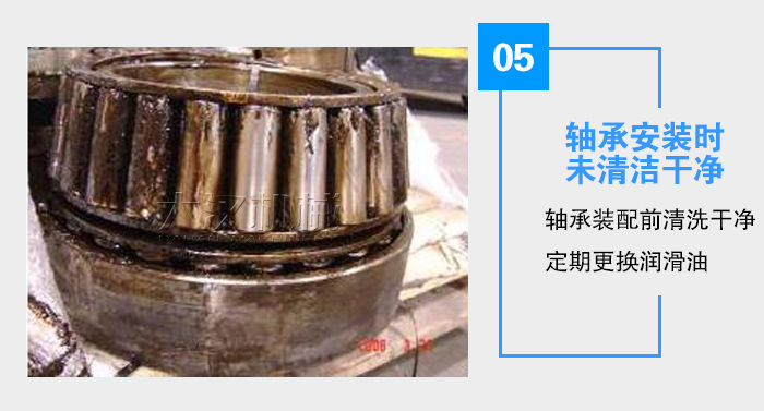 解決方法:軸承裝配前清洗干凈,另外在使用中需要定期更換潤滑油,換潤滑油在設(shè)備使用150h之后,之后每運行1000h都需要更換一次。