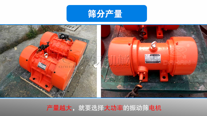 選擇一臺好的振動篩要綜合看整機(jī)的配置,而不是單一的去看電機(jī)功率,大漢機(jī)械專業(yè)生產(chǎn)各類振動篩與振動電機(jī),并承接特殊型號的設(shè)計與制作,歡迎用戶隨時前來咨詢。