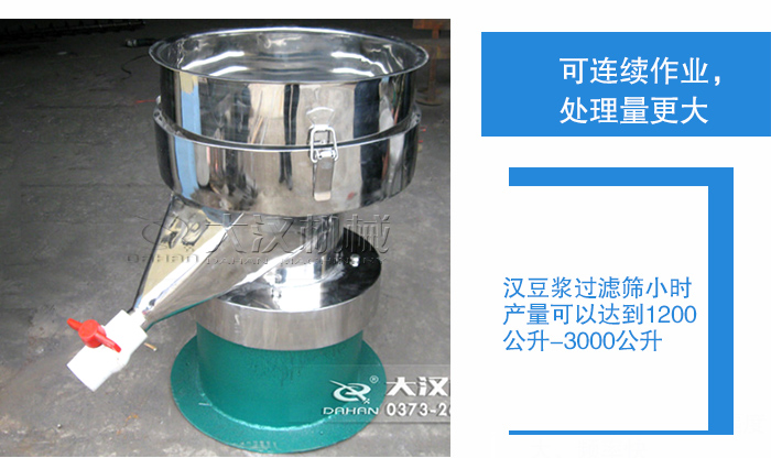大漢豆?jié){過濾振動篩可篩至400目,可以將豆?jié){過濾得更加細膩,保證良好的口感。