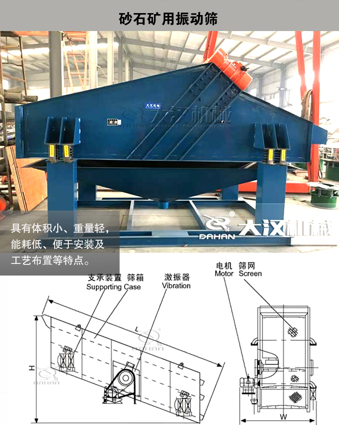 優(yōu)勢(shì):適用于粒度在0.074—5mm,含水量小于7%,大給料粒度不大于10mm,砂石直線振動(dòng)篩的大產(chǎn)量為20噸/時(shí)。