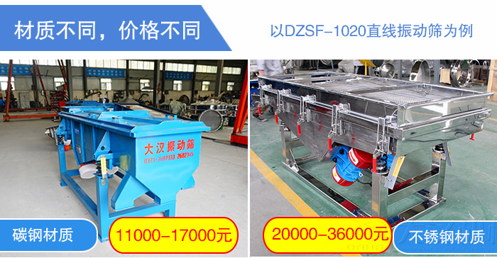 直線(xiàn)振動(dòng)篩材質(zhì)分為碳鋼和不銹鋼兩種材質(zhì),碳鋼沒(méi)有特意添加合金元素的鋼材,不銹鋼是為了防銹而添加高合金含量的鋼材,碳鋼通常比不銹鋼的強(qiáng)度更高,但容易生銹,所以碳鋼材質(zhì)的直線(xiàn)振動(dòng)篩會(huì)比不銹鋼材質(zhì)的更加便宜。關(guān)于直線(xiàn)振動(dòng)篩材質(zhì)的選擇,主要由物料篩分環(huán)境進(jìn)行選擇。以DZSF-1020直線(xiàn)振動(dòng)篩為例,碳鋼材質(zhì)的價(jià)格在11000-17000元之間,不銹鋼材質(zhì)的價(jià)格在20000-36000元之間。