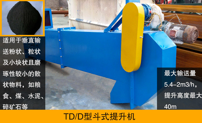 TD型斗式提升機(jī)是按照J(rèn)B3926-85《垂直斗式提升機(jī)》標(biāo)準(zhǔn)設(shè)計(jì)生產(chǎn)的,該種類斗式提升機(jī)使用功率比較低,輸送物料范圍廣。與傳統(tǒng)D型斗式提升機(jī)相比,該種類的斗式提升機(jī)輸送效率高、料斗形式多。它主要是由運(yùn)行部分(料斗與牽引膠帶)、帶有傳動(dòng)滾筒的上部區(qū)段,帶有拉緊滾筒的下部區(qū)段,中間機(jī)殼,驅(qū)動(dòng)裝置,逆止制動(dòng)裝置等組成,大輸送量5.4-2m3/h,提升高度大40m。
