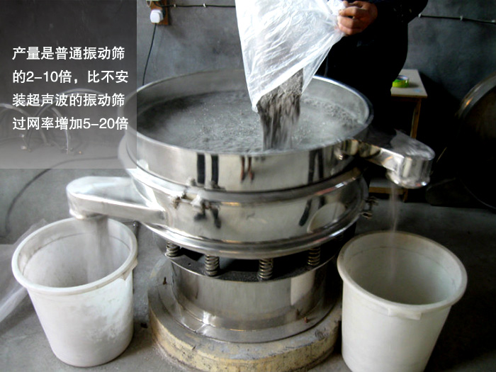 由于加裝超聲波篩分系統(tǒng)緣故,超聲波振動(dòng)篩在篩分粉末、顆粒、漿液類物料時(shí)產(chǎn)量是普通振動(dòng)篩的2-10倍,比不安裝超聲波的振動(dòng)篩過(guò)網(wǎng)率增加5-20倍。