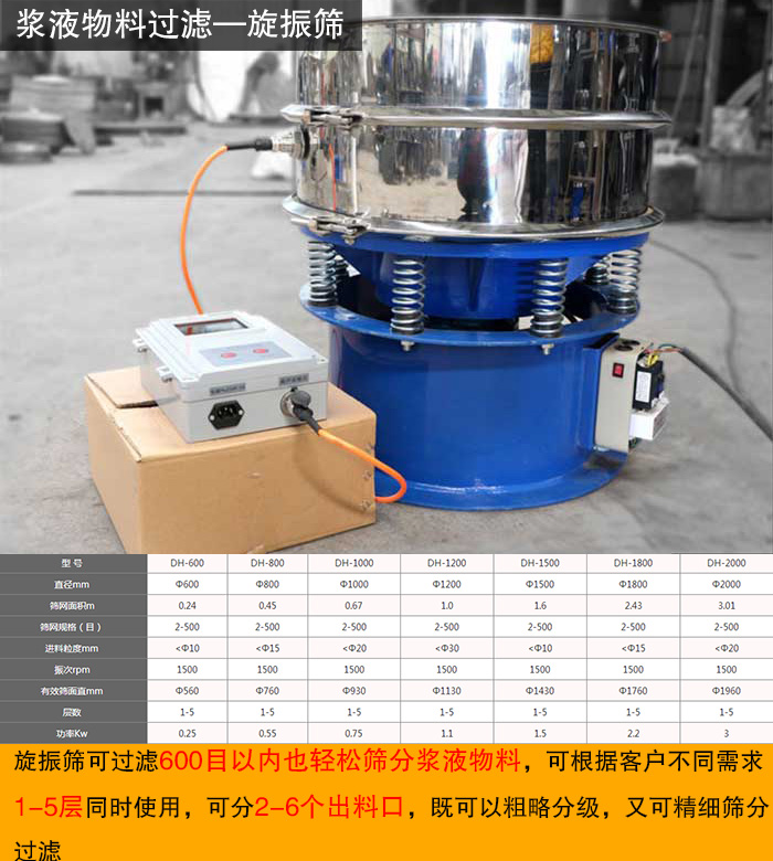 旋振篩振幅機物料運行軌跡可根據(jù)生產(chǎn)工藝需要任意調(diào)節(jié),無論物料的干與濕,精細與粗糙,重與輕,只要在500目或0.028m范圍內(nèi)均可篩分,即使物料是液體的或漿狀的只要在600目以內(nèi)也輕松篩分,可根據(jù)客戶不同需求1-5層同時使用,可分2-6個出料口,既可以粗略分級,又可精細篩分過濾。