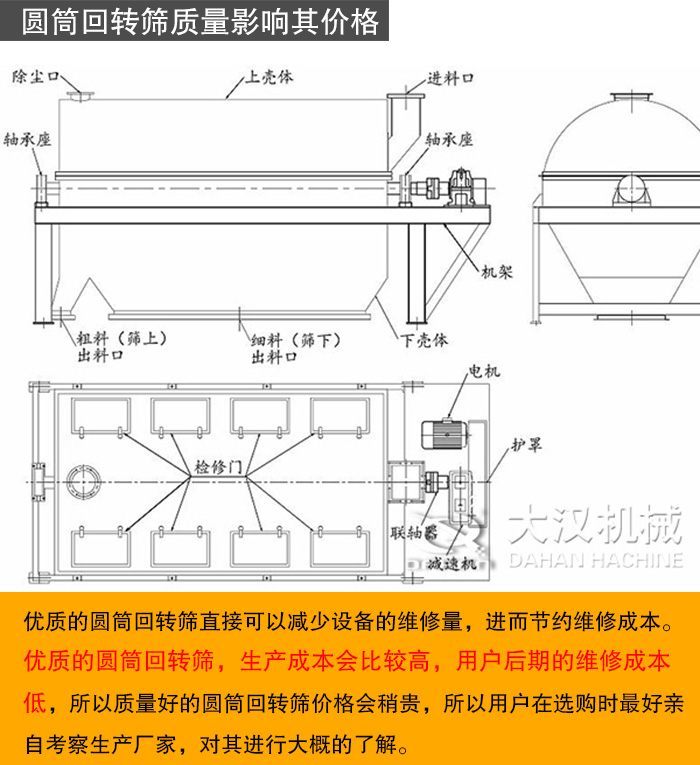 以上即是對圓筒回轉(zhuǎn)篩價格的分析,新鄉(xiāng)大漢作為圓筒回轉(zhuǎn)篩直銷廠家,無中間商賺取差價,價格優(yōu)惠且相較合理,產(chǎn)品是直接面向客戶的,設(shè)備質(zhì)量通過ISO9001國際質(zhì)量體系認證和歐盟CE雙認證,售后服務(wù)好,是值得用戶信賴的合作伙伴。