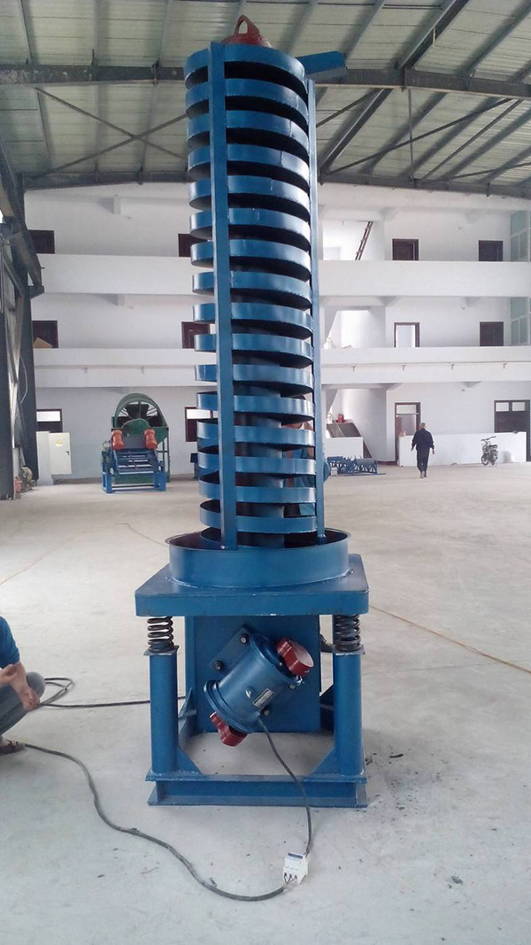 DZC系列垂直振動(dòng)提升機(jī)采用振動(dòng)電機(jī)作振動(dòng)源,兩臺(tái)振動(dòng)電機(jī)對(duì)稱交叉安裝,并做相反方向自同步旋轉(zhuǎn),利用兩振動(dòng)電機(jī)的合成振幅,將物料沿螺旋輸送槽向上輸送,從而完成物料的向上(或向下)輸送作業(yè)。物料被拋起時(shí)與空氣充分接觸,還可以起到散熱冷卻的作用。該提升機(jī)有分開槽式、封閉式兩種結(jié)構(gòu),可作為各行業(yè)中,小顆粒物料的垂直輸送之用,亦可根據(jù)不同工藝的要求進(jìn)行特殊設(shè)計(jì)。